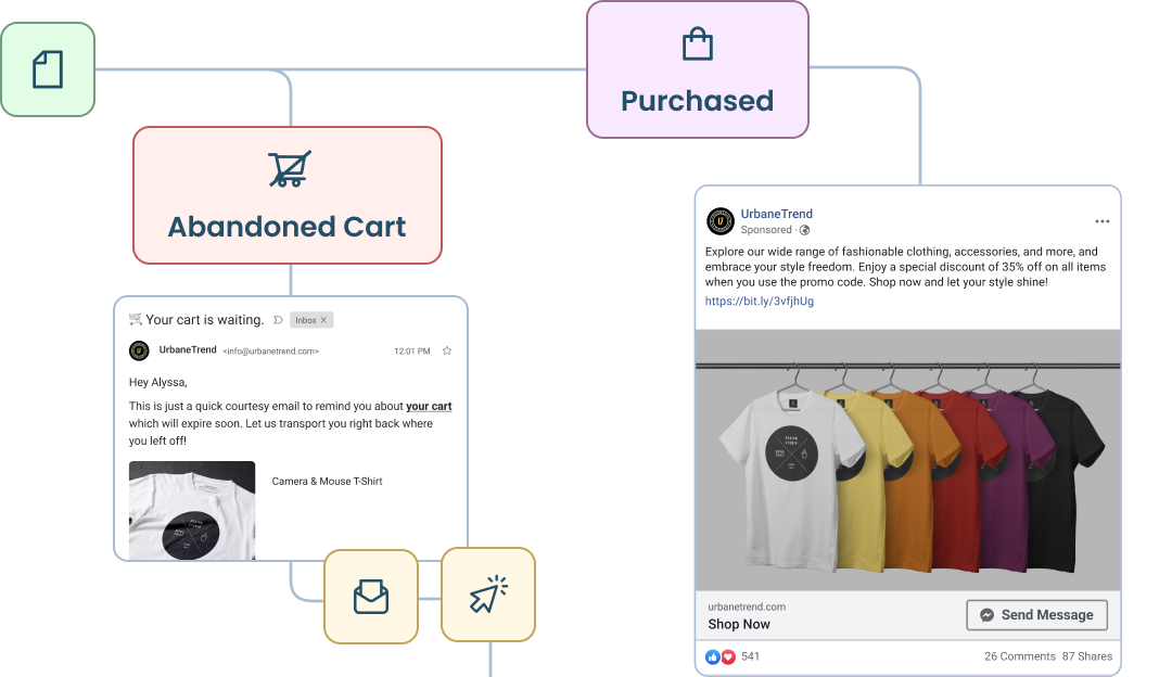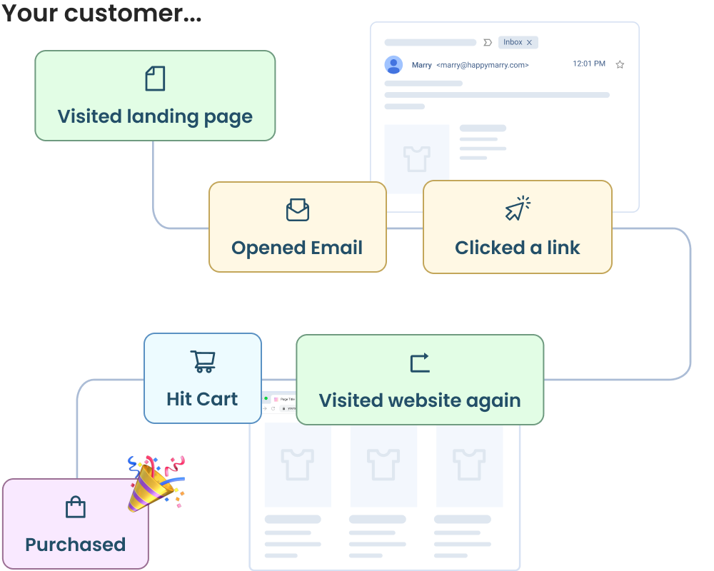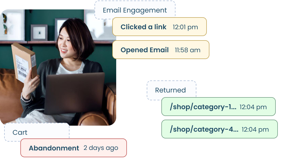 With Customers.ai you can get back the customer journey insights you once had. See page paths, email opens, cart abandonments, and more!Â