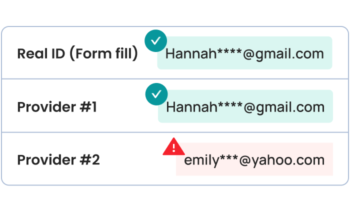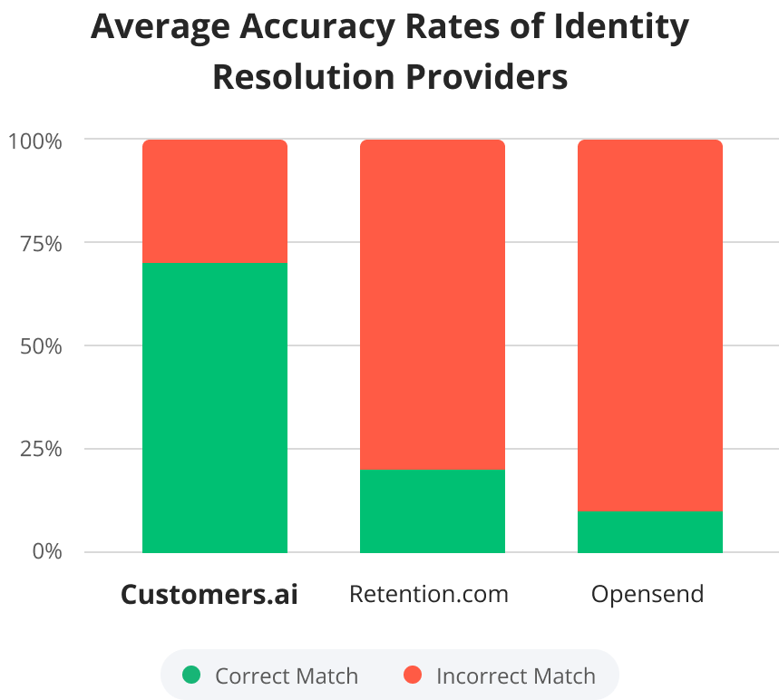 *Average anonymous visitor identity resolution accuracy rates determined by tests conducted between February and May 2025 on U.S. ecommerce traffic. Testing methodology is reproducible and can be independently verified by comparing vendor-provided anonymous visitor profiles to user-provided form completions. Accuracy rates vary by unique website environment and vendor.