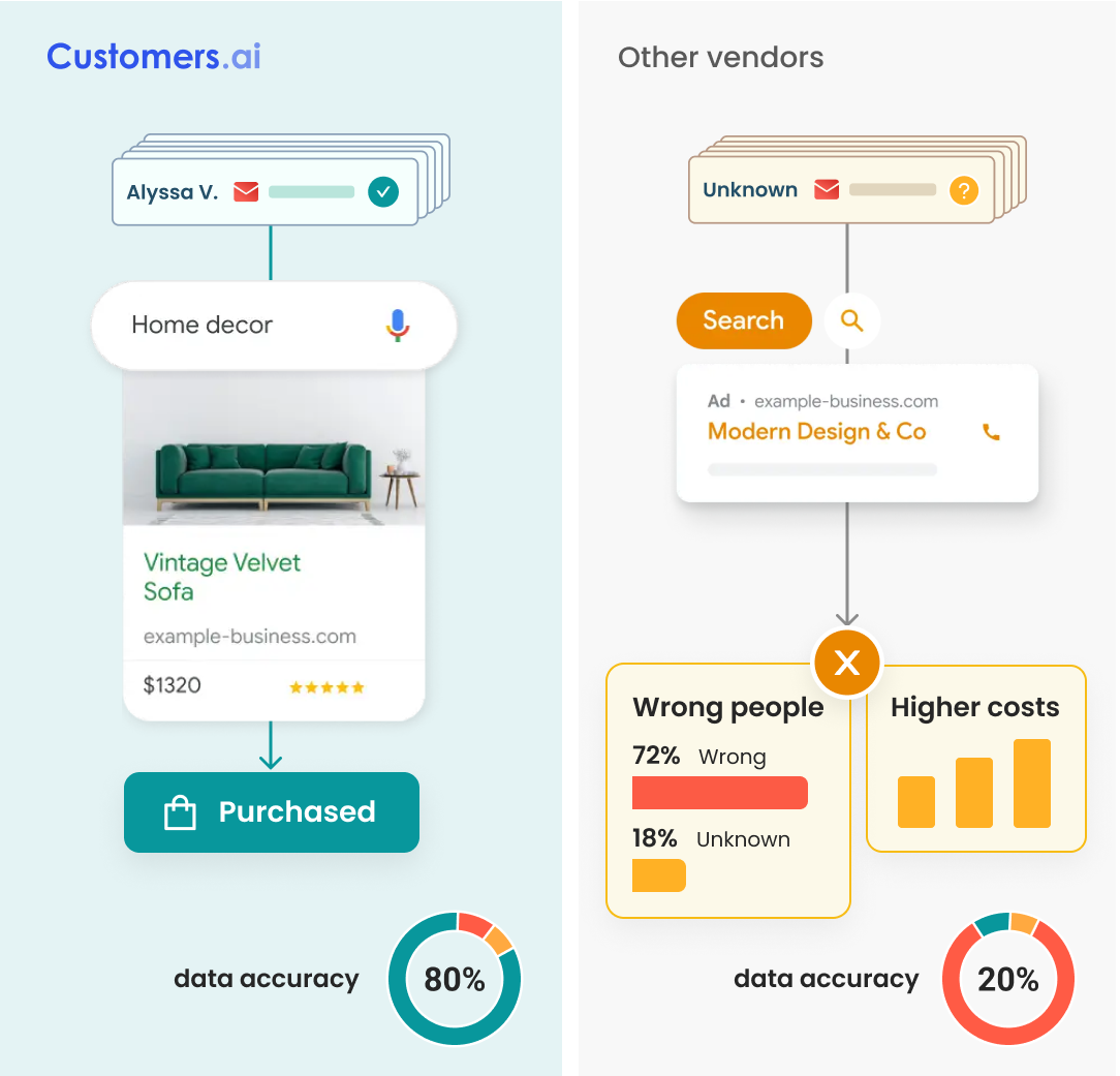 Customers.ai stands apart with the highest accuracy rates in the industry – as much as 2-5x higher accuracy, ensuring your campaigns reach the right people and your budget is allocated wisely.