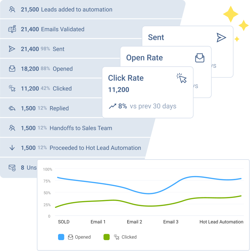Get real-time data on the performance of sales and marketing outreach campaigns to optimize your strategies and increase conversions.