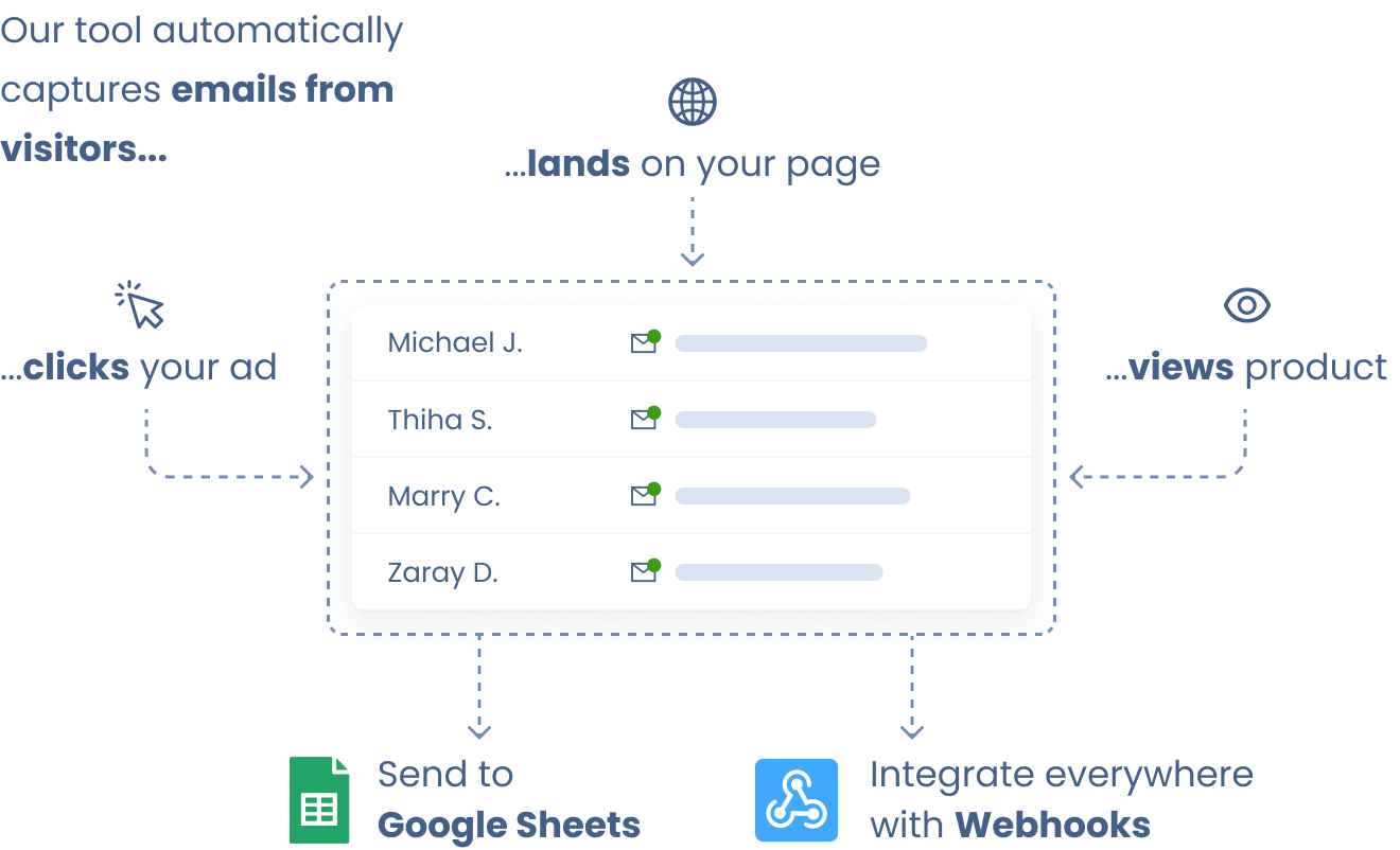 The Customers.ai Website Visitor ID X-Ray Pixel app integrates directly with Webhooks and Google Sheets so you can easily sync new website visitor contacts to your existing nurture campaigns.