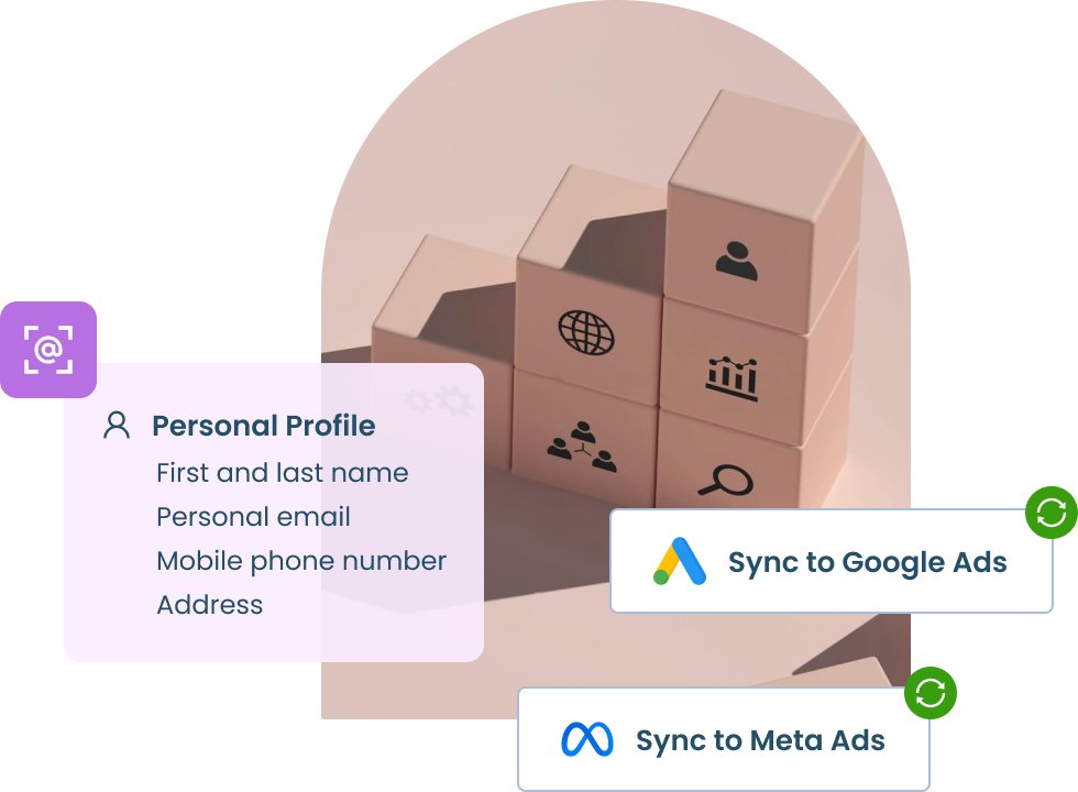 Use website visitor contacts to generate and grow remarketing audiences with more complete lists than Google and Meta can provide on their own.
